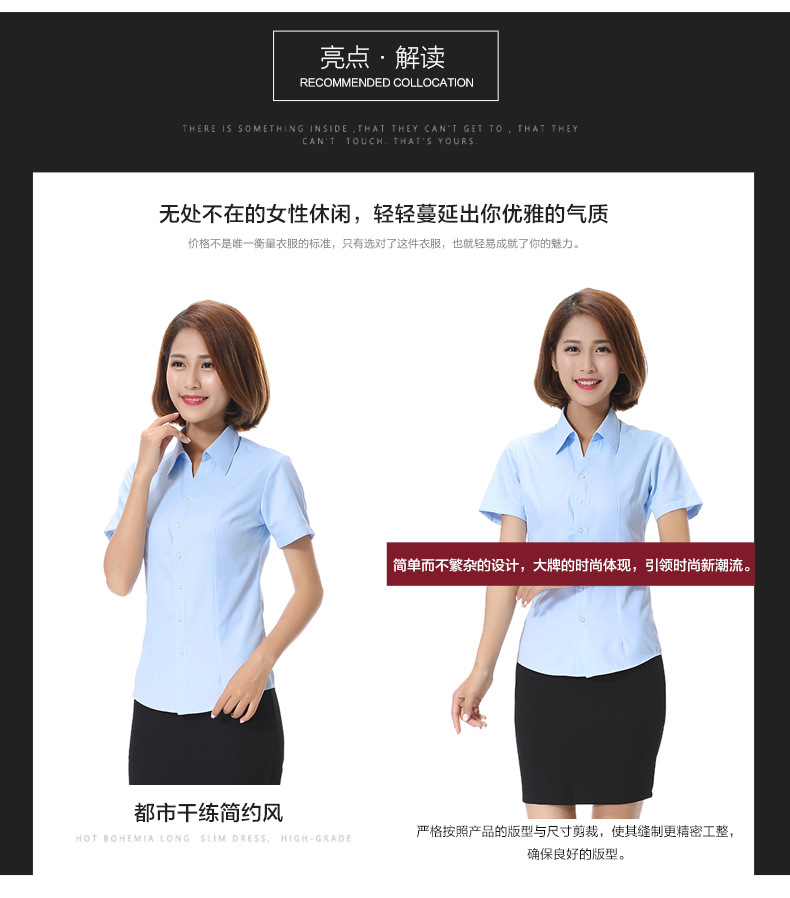 夏季高棉修身版V领纯色女式短袖衬衫职业装工作服绣LOGO